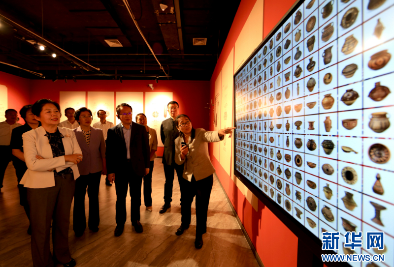 出席活动的嘉宾参观《彣彩中国》文化科技特展。新华网发(侯新建 摄)