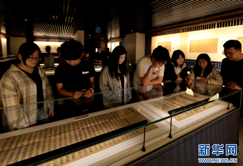 游客在参观“持廉秉公—孔府旧藏‘誊黄’撷英展”。新华网发(侯新建 摄)