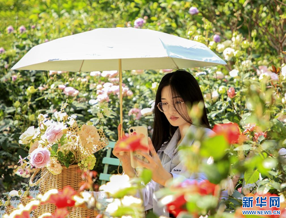 5月,在山东日照白鹭湾的玫瑰小院里,200余种玫瑰竞相绽放,游客纷至沓来,尽情感受“人在画中行”的诗意。(刘晓楠)