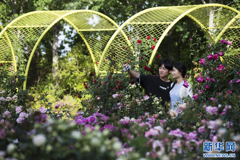 踏入玫瑰小院,目光所及尽是层层叠叠的花海。新华网发(姜大华 摄)