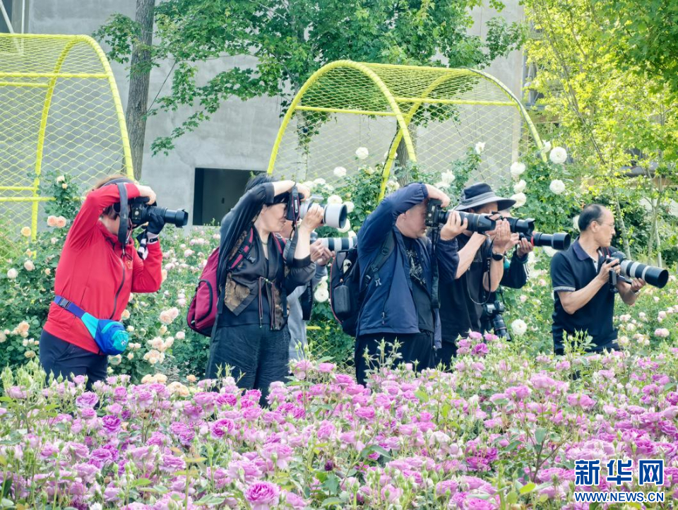 摄影爱好者穿梭于繁花之间,多维度呈现玫瑰花海的浪漫景致。新华网发(厉晓晨 摄)