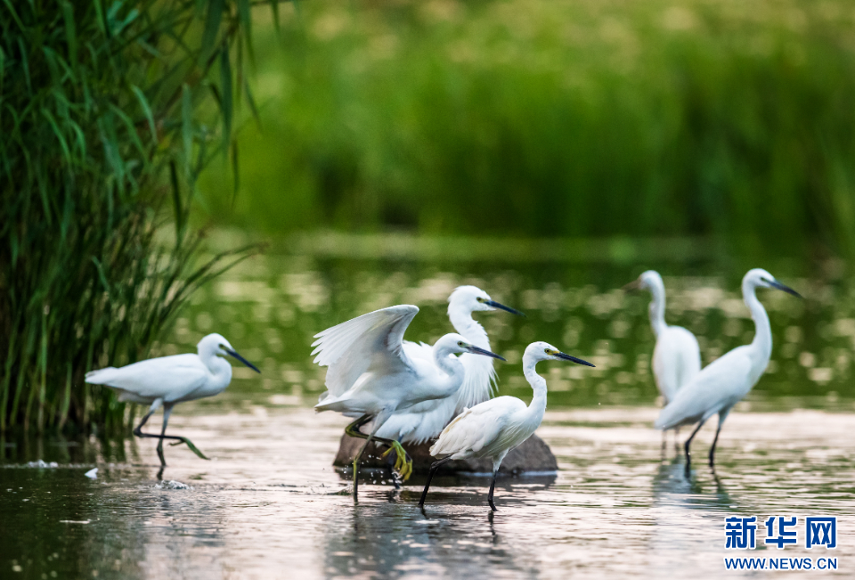 成群的白鹭在沭河郯城段嬉戏、休憩。新华网发(刘宗强 摄)